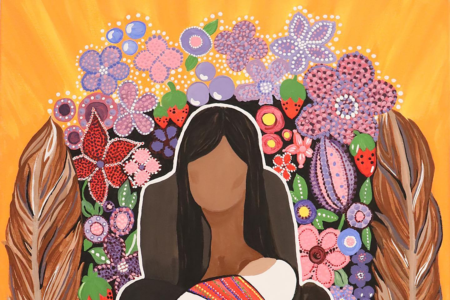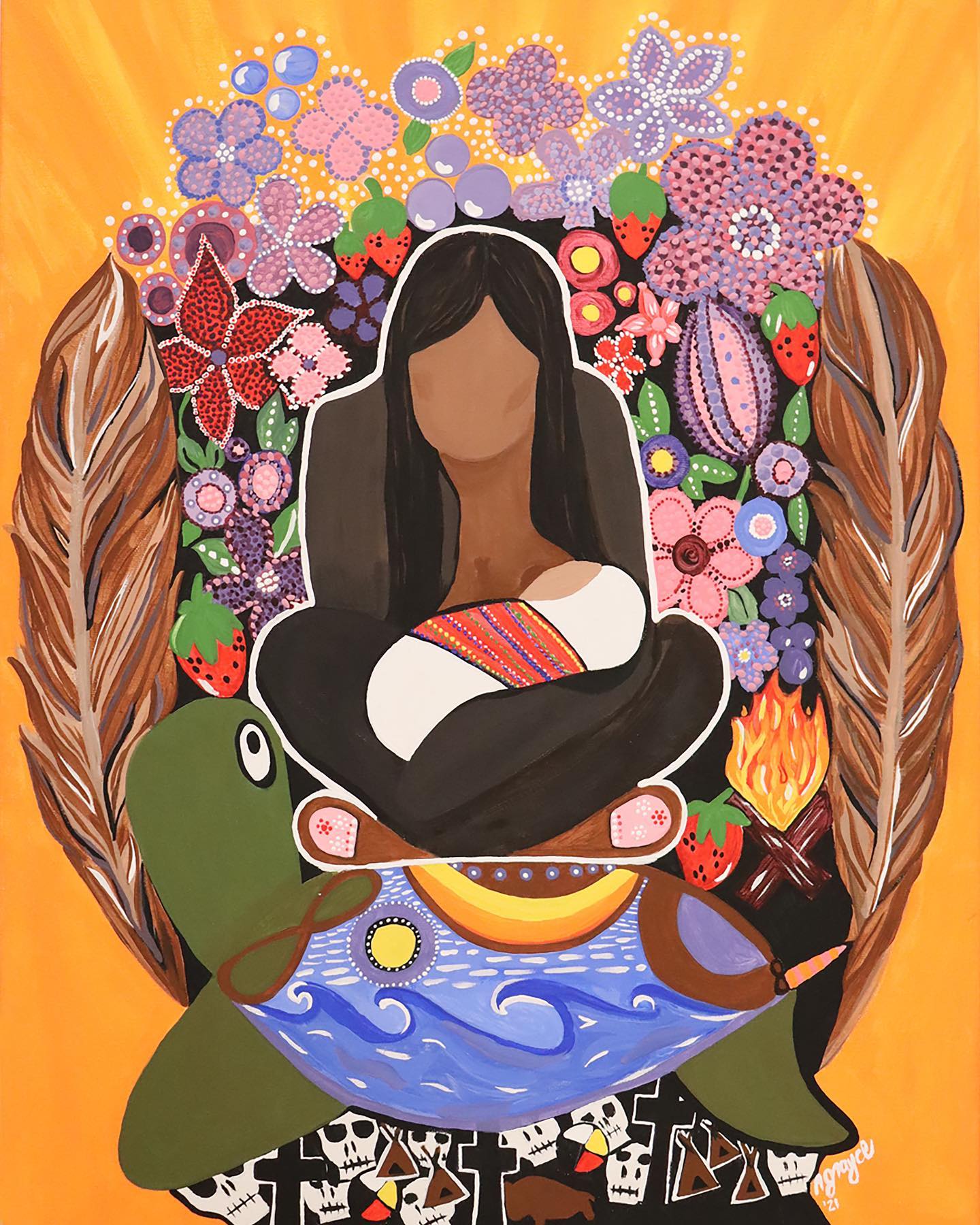 Painting by Rachael Grayce depicting the impact to Indigenous lives post contact with settlers.